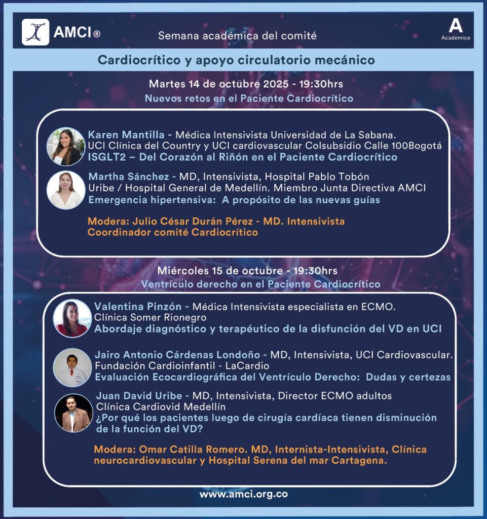 Semana académica Comité Cardiocrítico y apoyo circulatorio mecánico AMCI - 14 y 15 de octubre 2025 - 19:30hrs